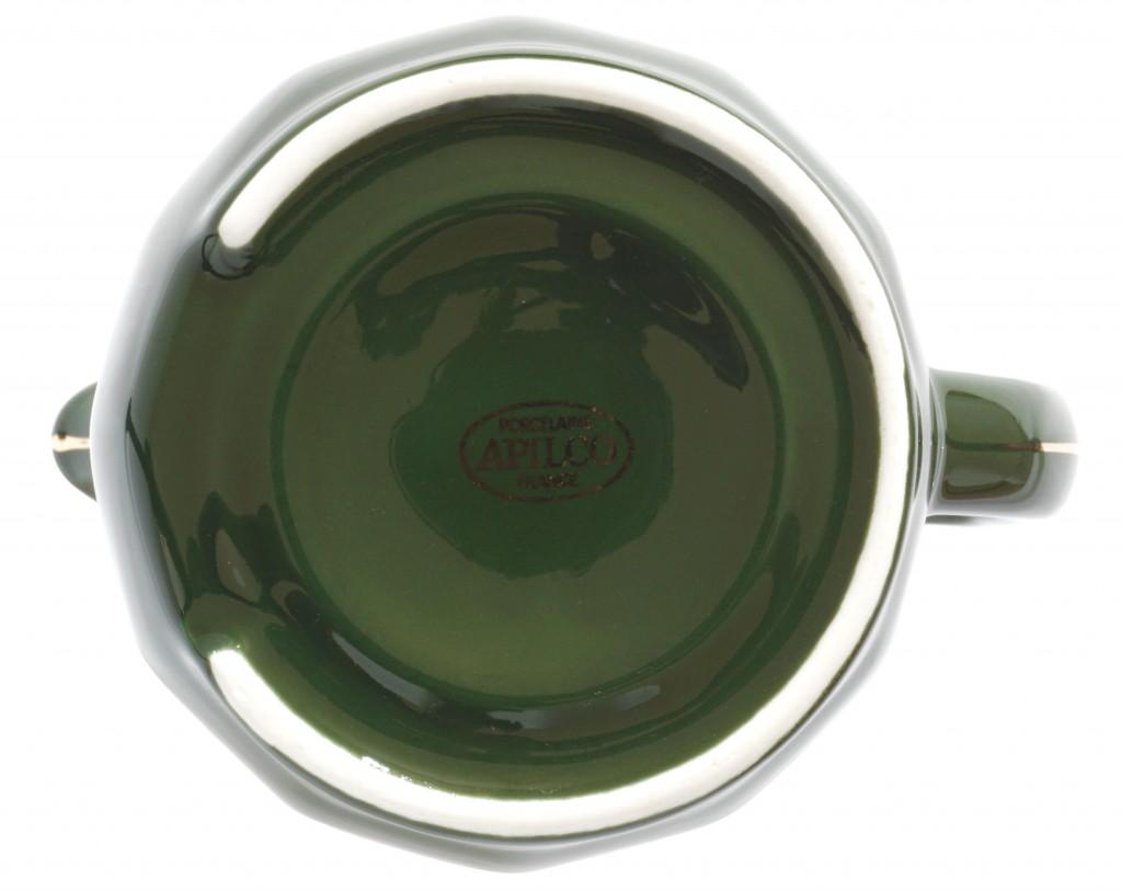 An Apilco green and gold small milk jug/large creamer.