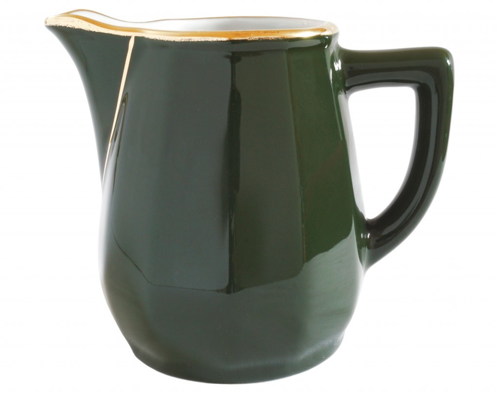 An Apilco green and gold small milk jug/large creamer.