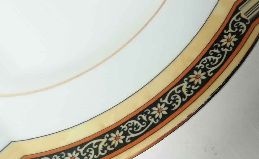 Items showing signs of wear have visible usage marks, either scuffs, fading and/or more extreme cutlery marks (more than expected for the age of the item). Specific details are mentioned in the description above.