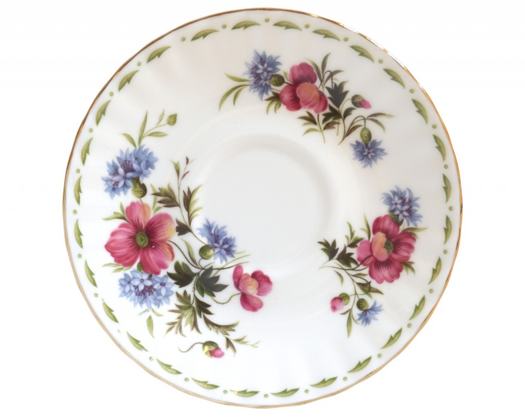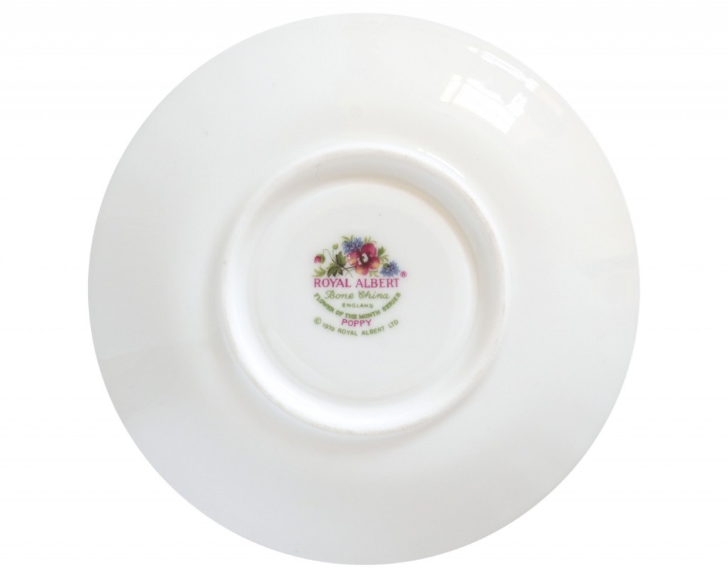 A Royal Albert August coffee cup saucer featuring the Poppy.