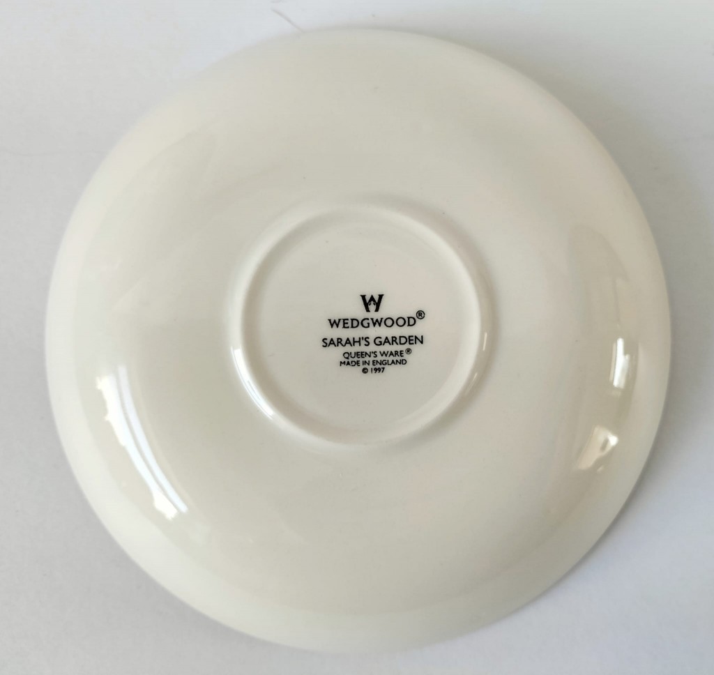 The cup measures approximately 3 1/2 inches in diameter and stands around 2 1/2 inches tall. The saucer measures approximately 5 3/4 inches in diameter.