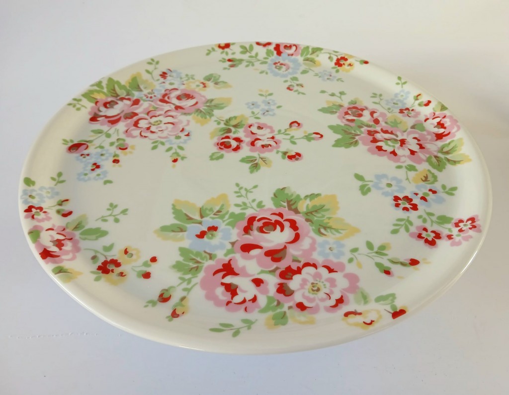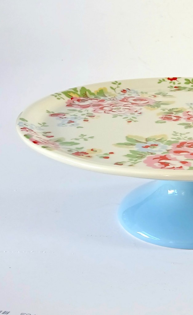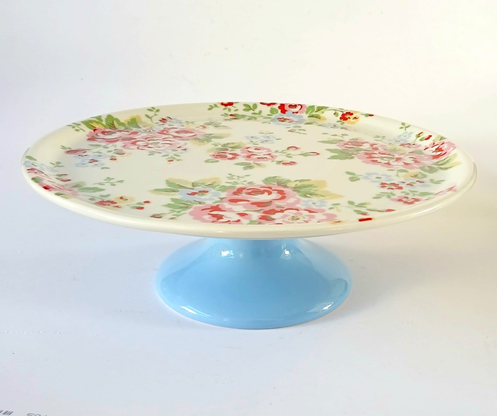 A Cath Kidston footed cake stand featuring Spray flowers.