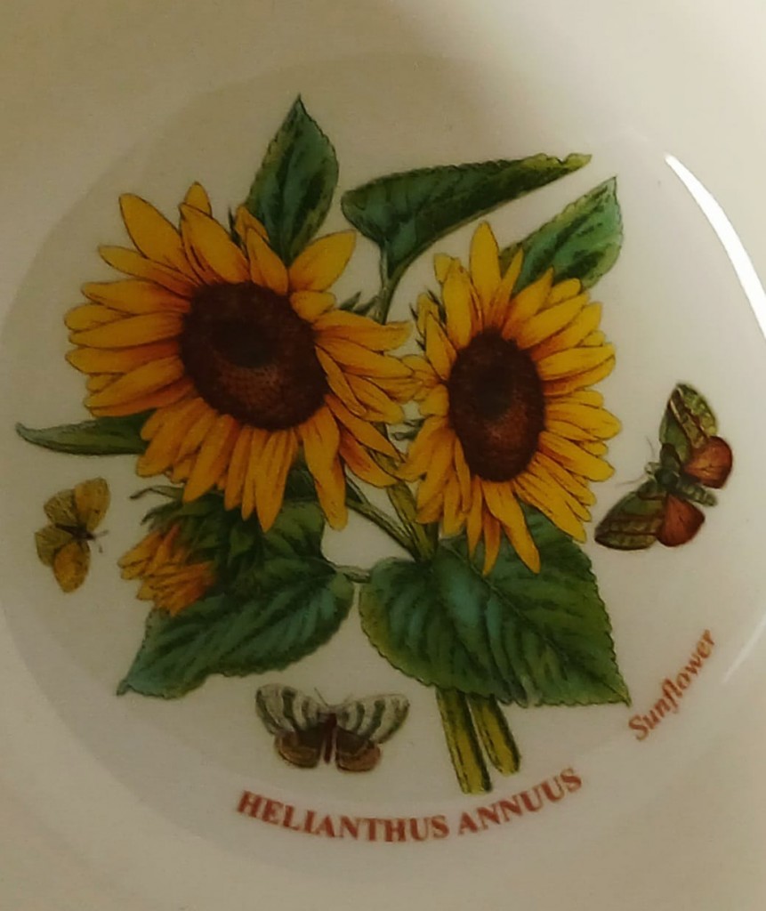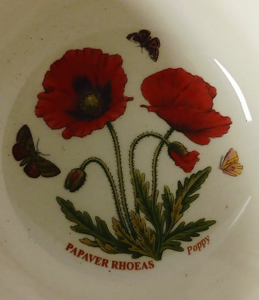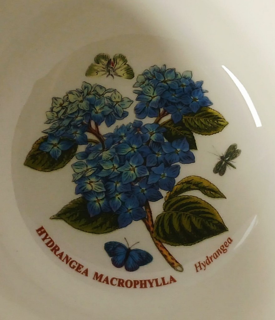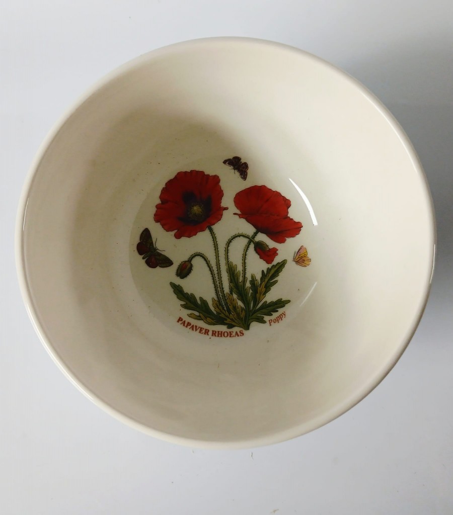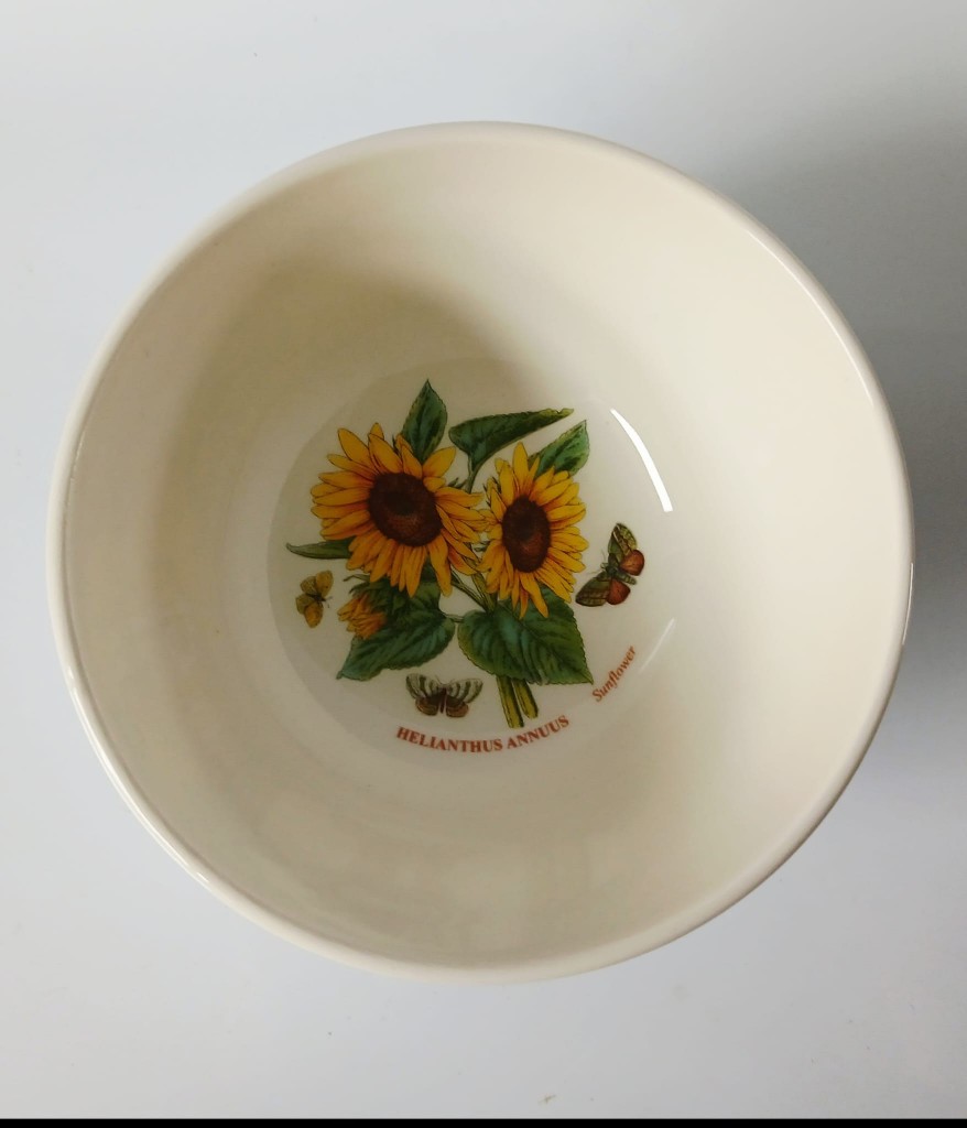 A set of five Portmeirion Botanic Garden Meadow bowls each with a different design. The bowls consist of Lathyrus Odoratus (Sweet Pea), Digitalis Purpurea (Foxglove), Hydrangea Macrophylla (hydrangea), Hellianthus Annuus (Sunflower) and Papaver Rhoeas (Poppy).
