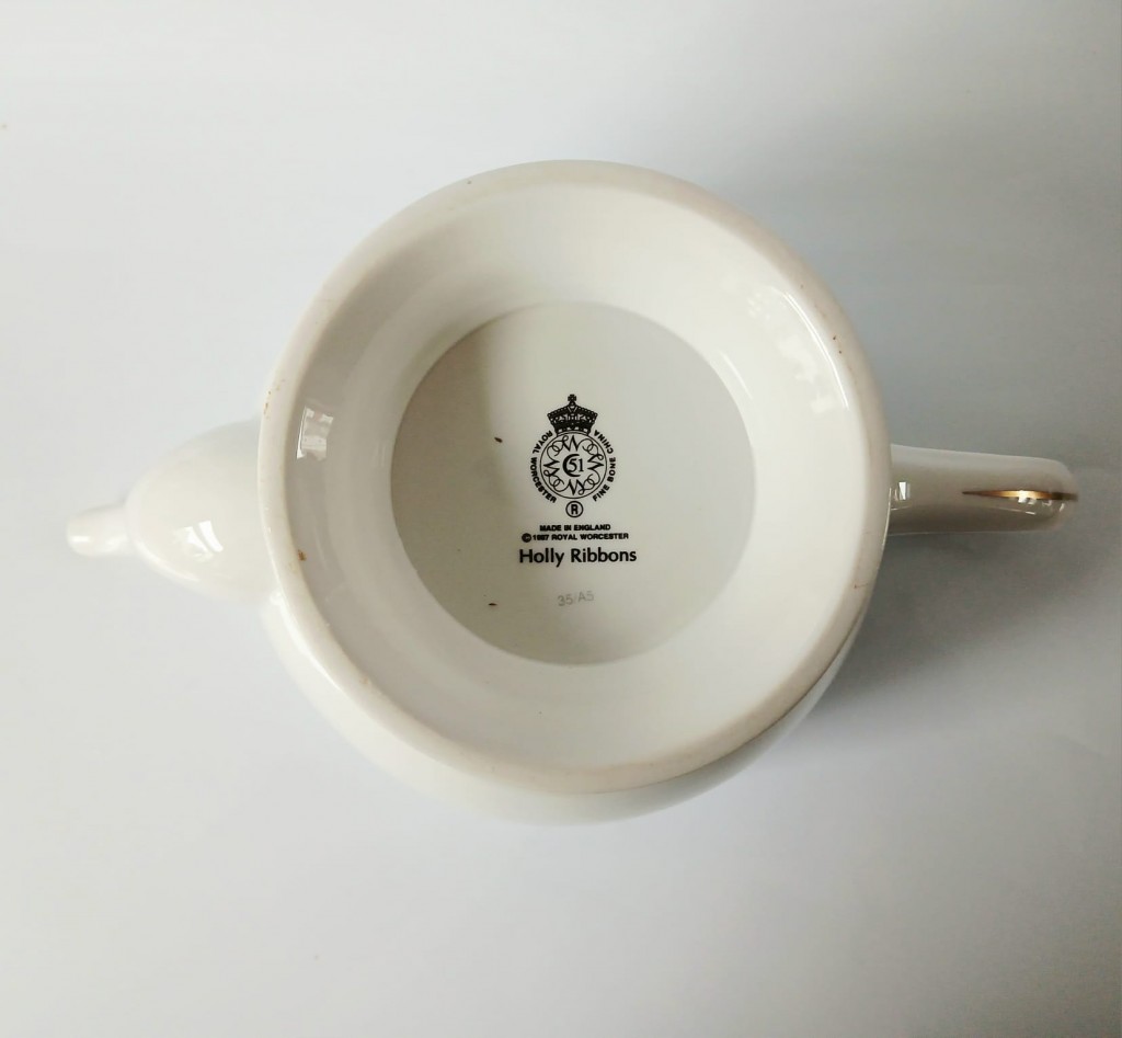 A Royal Worcester fine bone china Holly Ribbons large teapot.