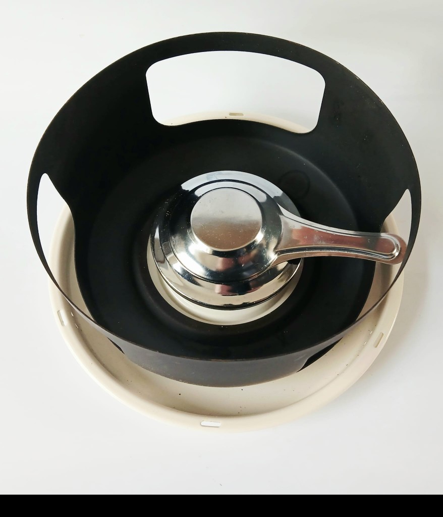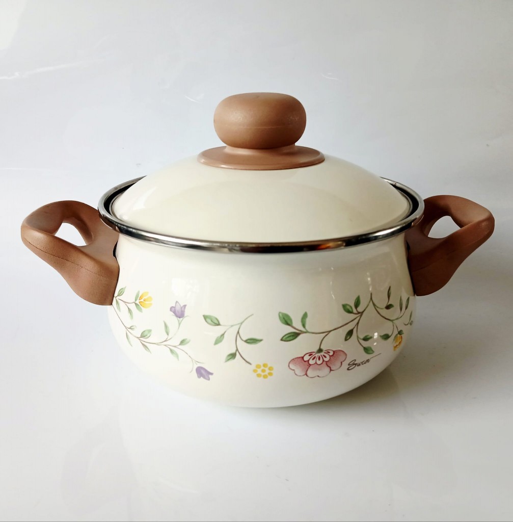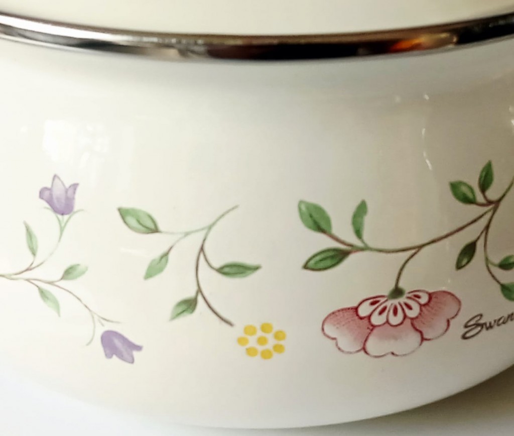 A non-stick fondue set featuring the ever popular Summer Chintz design reproduced by Swan with the kind permission of Creative Tableware, Stoke on Trent, England.