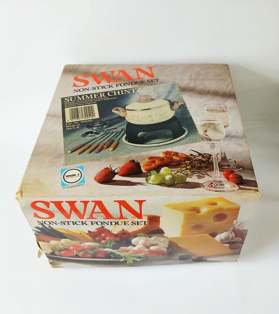 The fondue set comes with the original box however please note this is tatty.