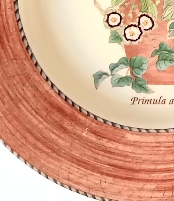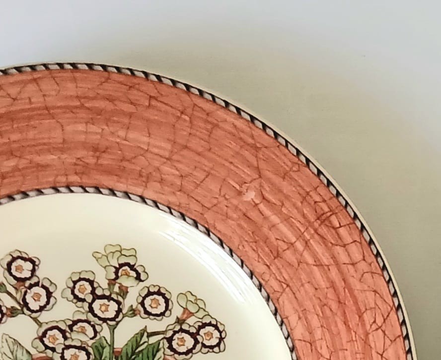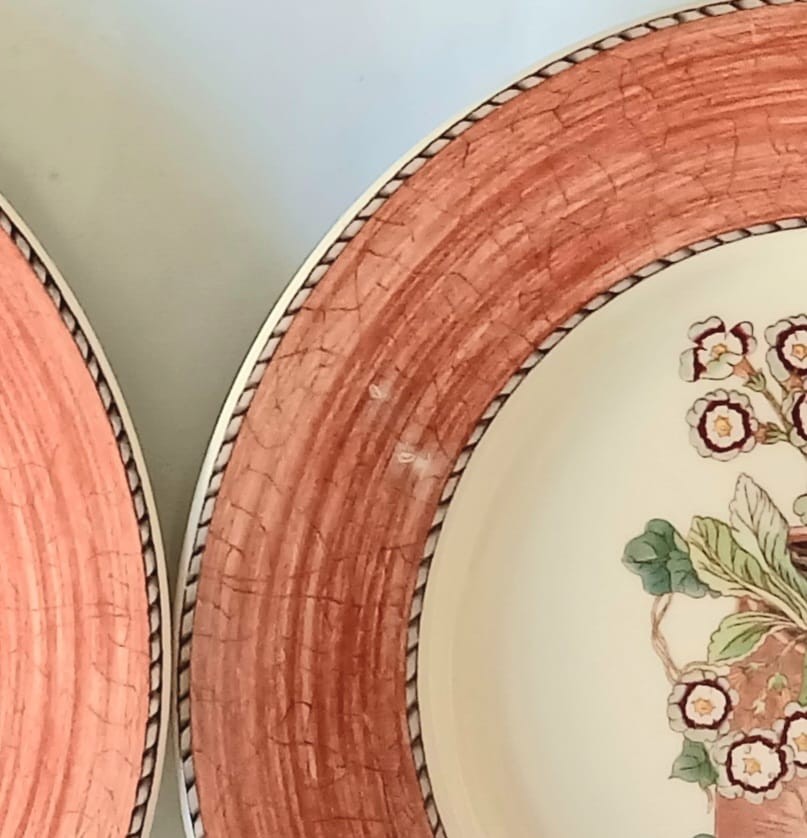 Please note two plates have a printing issue to the terracotta border and two plates have a small amount of white showing to the terracotta border as shown in the photographs.